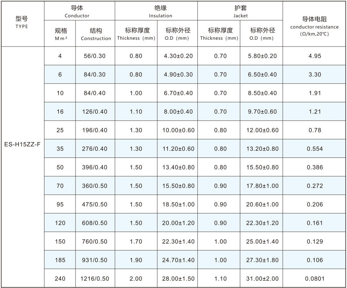 導(dǎo)體采用IEC60228-2004標(biāo)準(zhǔn)第五類或六類導(dǎo)體4.0-240mm2鍍錫或裸銅