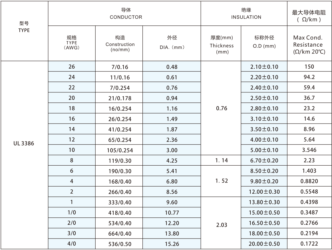 導(dǎo)體采用單根或絞合30-4/0AWG鍍錫或裸銅絲