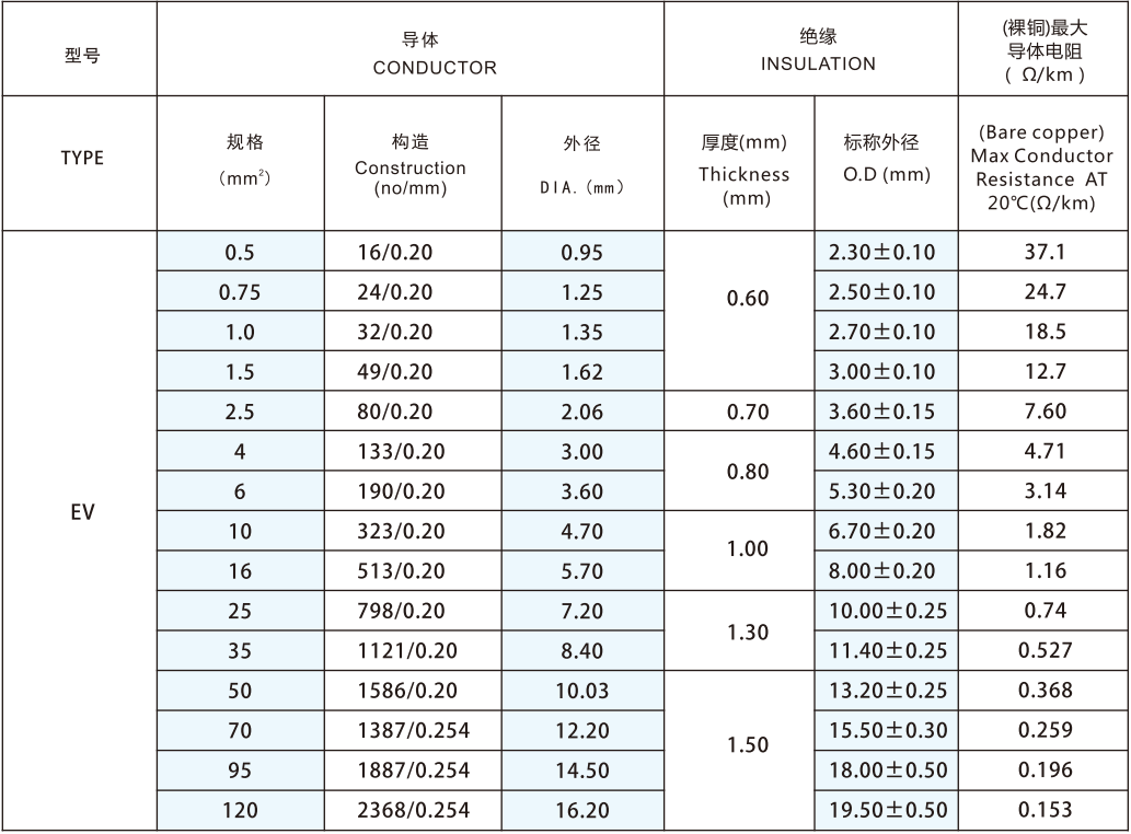 導(dǎo)體采用單根或絞合0.5-120mm2鍍錫或裸銅絲