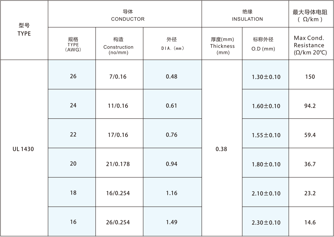 導(dǎo)體使用單根或絞合30-16AWG鍍錫或裸銅絲