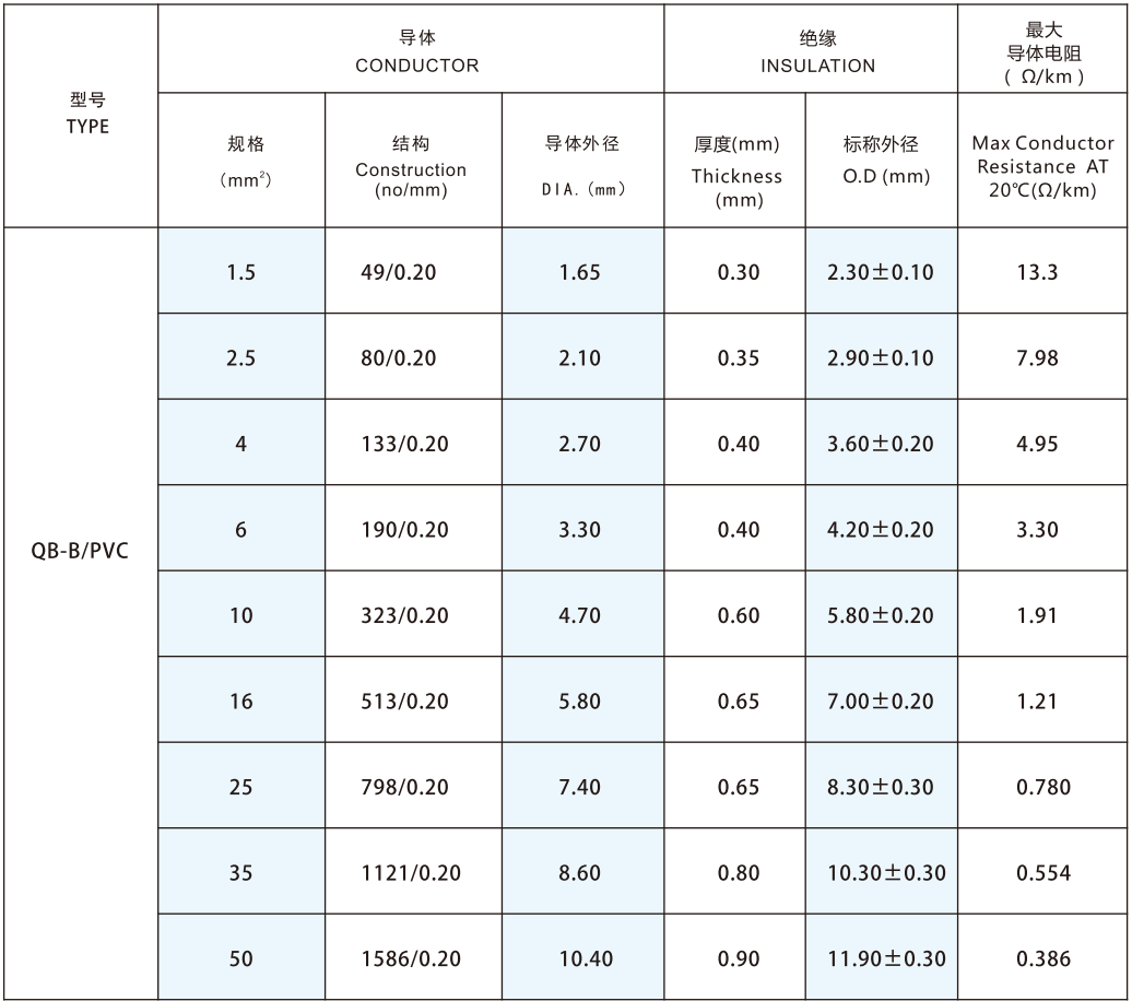 導體采用單根或絞合1.5-50mm2鍍錫或裸銅絲