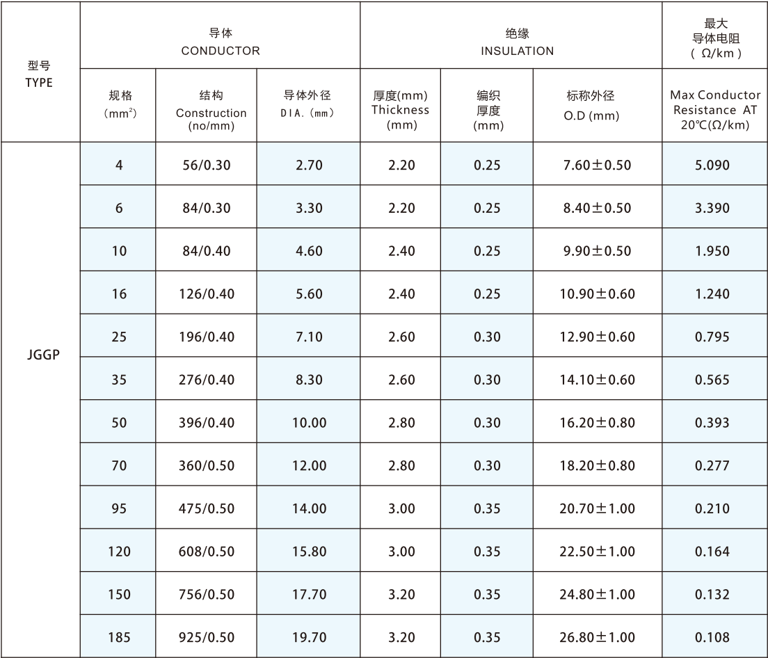 導(dǎo)體采用單根或絞合4.0-120mm2鍍錫或裸銅絲